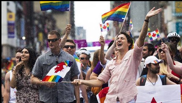 În fotografia de mai jos este surprins la parada Pride Parade din Toronto, pe 3 iulie 2016.
