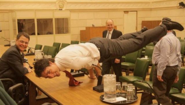 În martie 2016, o imagine cu Trudeau care îşi demonstrează abilităţile sportive pe un birou a făcut înconjurul reţelelor de socializare.