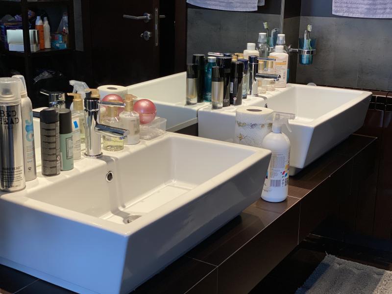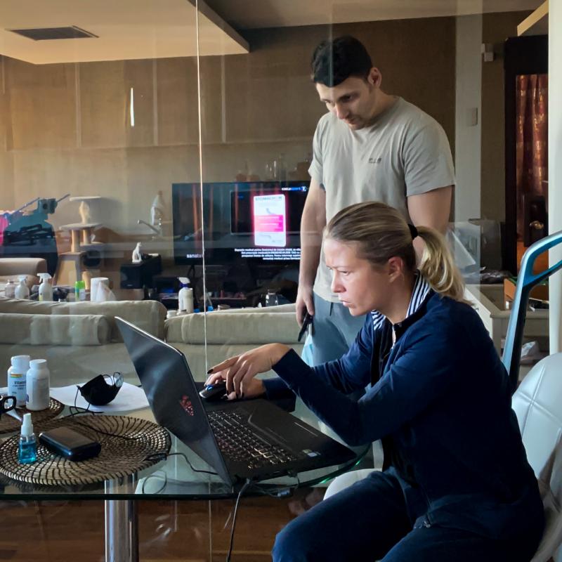 Avem în casă un perete de sticlă despărțitor, între living și bucătărie. Mai util decât acum nu a fost niciodată. Nu o să stăm împreună... dar măcar ne vedem și e safe. Avem două laptopuri, două televizoare, două canapele, două chiuvete, două dușuri. Le-am împărțit. M-am echipat “cosmonaut” și am dezinfectat toate locurile unde a stat el și unde urma să stau ...doar eu. Am împărțit la doi mănușile, măștile, am pus dezinfectanți și prosoape de hârtie în toată casa, în fiecare cameră.