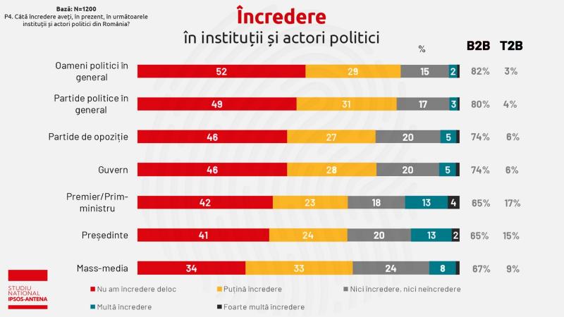Românii nu cred nici în partide politice, nici în oamenii politici, nici în cine e la guvernare, dar nici în partidele din opoziţie. De aici, rezultă pandemia de neîncredere la nivel general, la nivel de clasă politică.