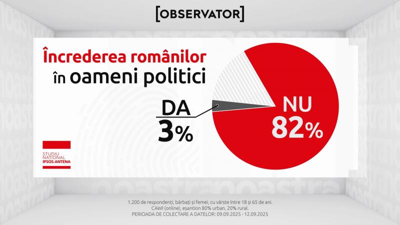 Aceasta este prima temă a Studiului Național Antena „Toată Romania Noastră”. Iar rezultatele din acest an, spun specialiștii, scot la iveală niște cifre cum nu au mai existat vreodată la noi în țară. Peste 80 la sută dintre români și-au pierdut încrederea în politicieni.