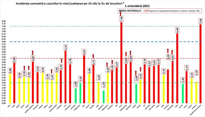 Incidenţa cazurilor de coronavirus la 14 zile - 1 octombrie