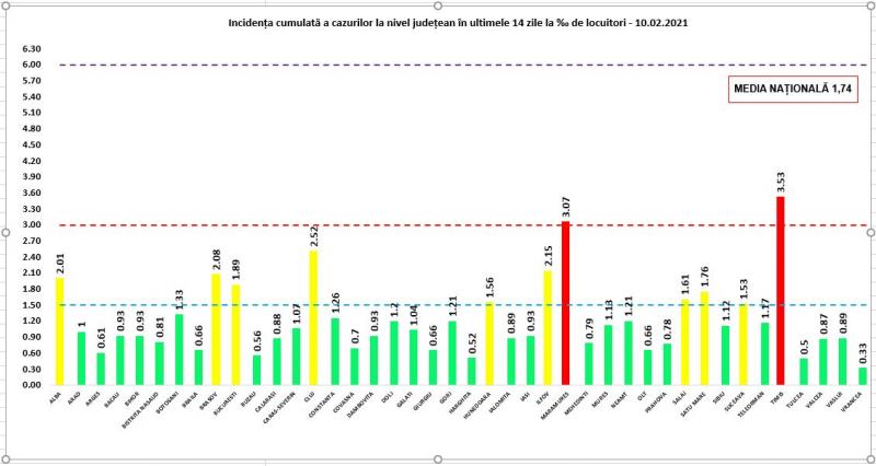 Incidenţa cazurilor de Covid-19 în România - 10 februarie 2021