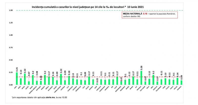 Incidenţa cazurilor de Covid-19 în România - 10 iunie 2021