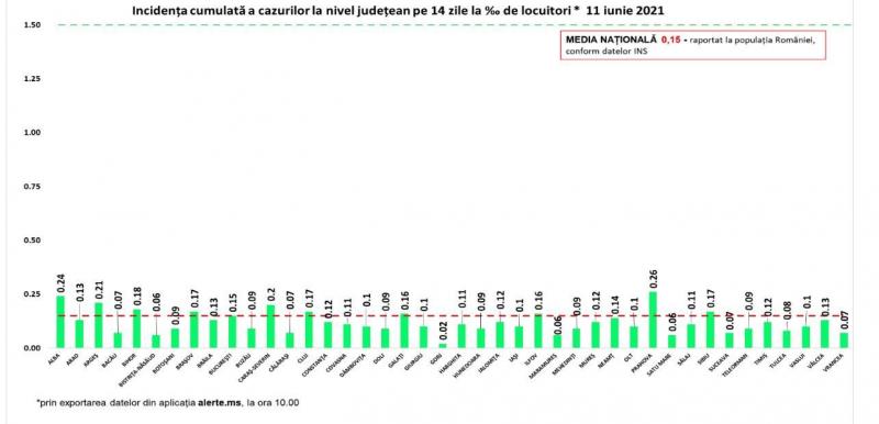 Incidenţa cazurilor de Covid-19 în România - 11 iunie 2021