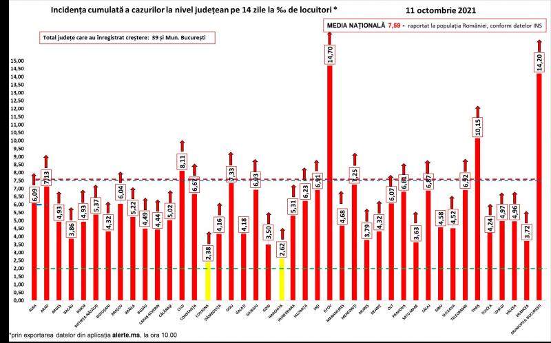 Incidenţa cazurilor de coronavirus la 14 zile - 11 octombrie