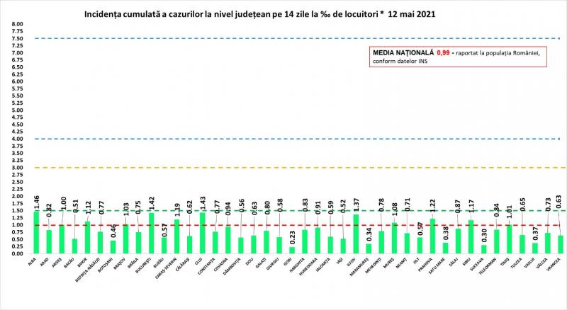 Incidenţa cazurilor de Covid-19 în România - 12 mai 2021