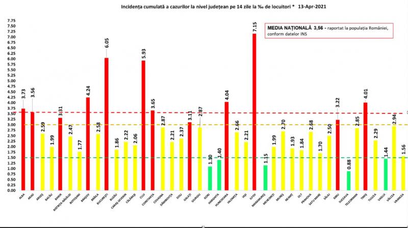 Incidenţa cazurilor de Covid-19 în România - 13 aprilie 2021