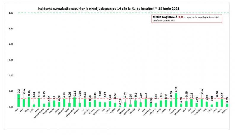 Incidenţa cazurilor de Covid-19 în România - 15 iunie 2021