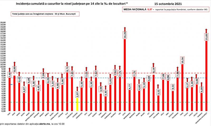 Incidenţa cazurilor de coronavirus la 14 zile - 15 octombrie