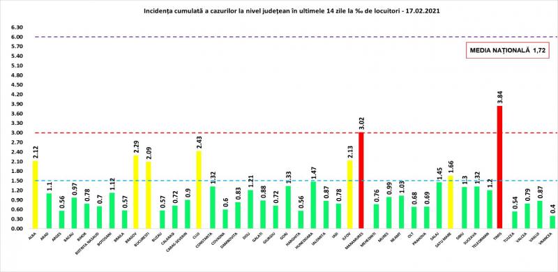 Incidenţa cazurilor de Covid-19 în România - 17 februarie 2021