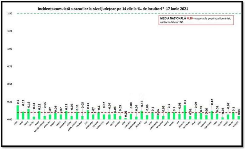 Incidenţa cazurilor de Covid-19 în România - 17 iunie 2021