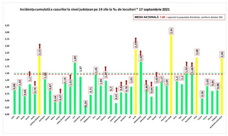 Incidenţa cazurilor de coronavirus la 14 zile - 17 septembrie