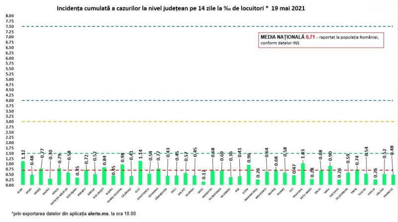 Incidenţa cazurilor de Covid-19 în România - 19 mai 2021