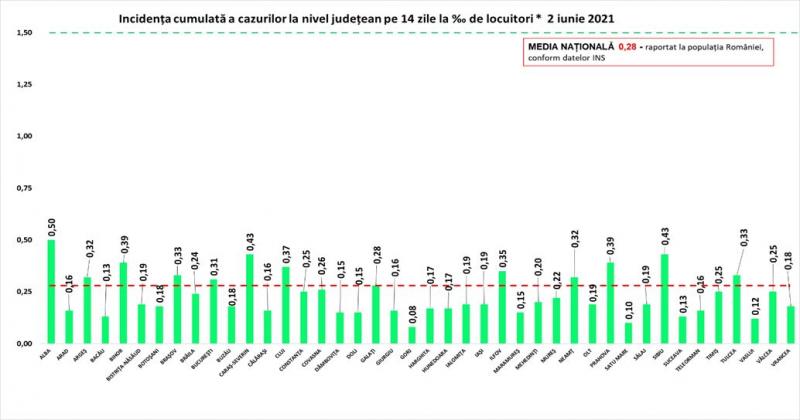 Incidenţa cazurilor de Covid-19 în România - 2 iunie 2021
