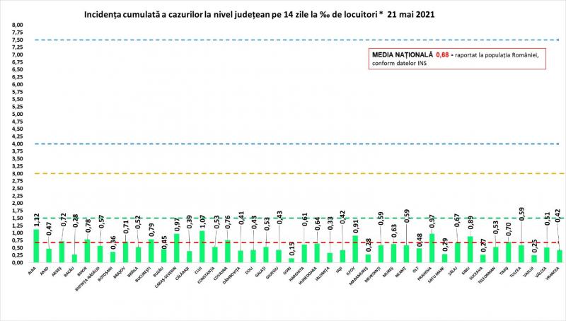Incidenţa cazurilor de Covid-19 în România - 21 mai 2021