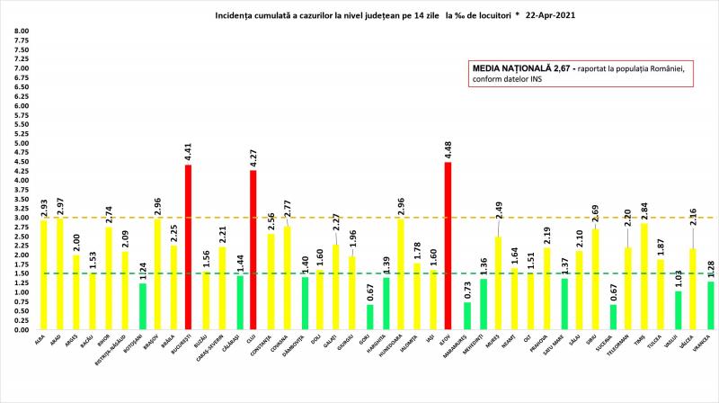 Incidenţa cazurilor de Covid-19 în România - 22 aprilie 2021