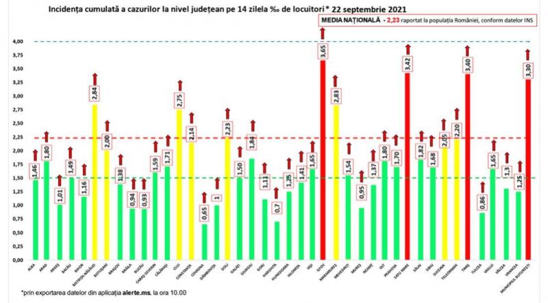 Incidenţa cazurilor de coronavirus la 14 zile - 22 septembrie