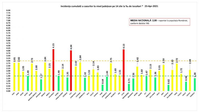 Incidenţa cazurilor de Covid-19 în România - 23 aprilie 2021