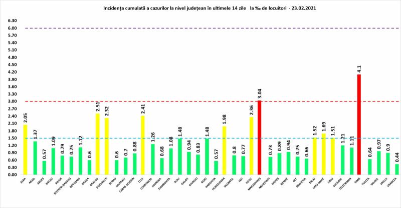 Incidenţa cazurilor de Covid-19 în România - 23 februarie 2021