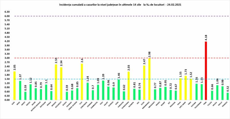 Incidenţa cazurilor de Covid-19 în România - 24 februarie 2021