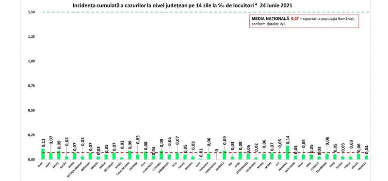 Incidenţa cazurilor de Covid-19 în România - 24 iunie 2021