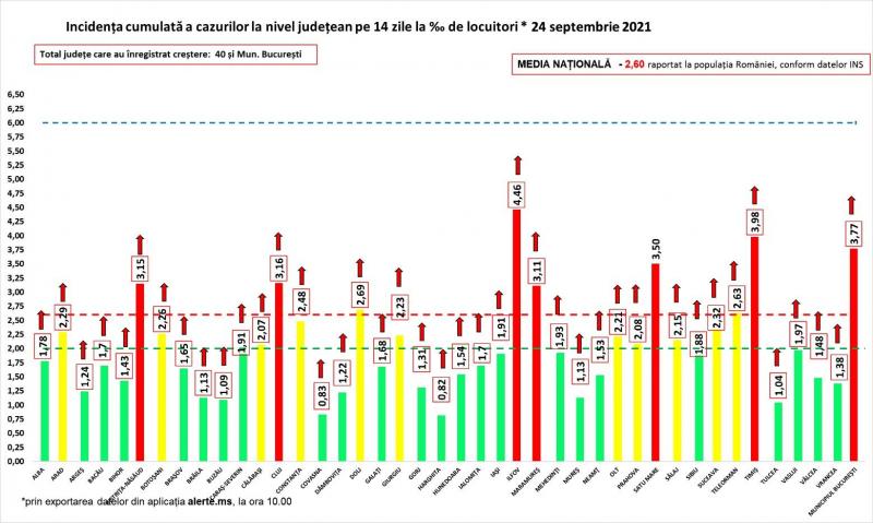 Incidenţa cazurilor de coronavirus la 14 zile - 24 septembrie