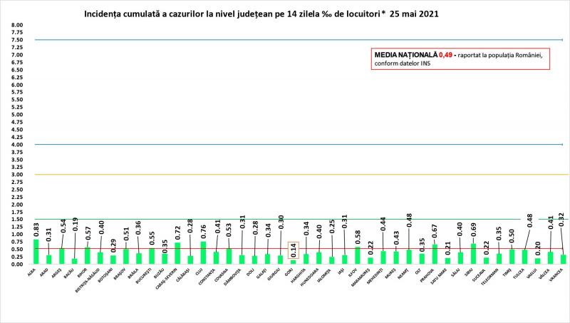 Incidenţa cazurilor de Covid-19 în România - 25 mai 2021