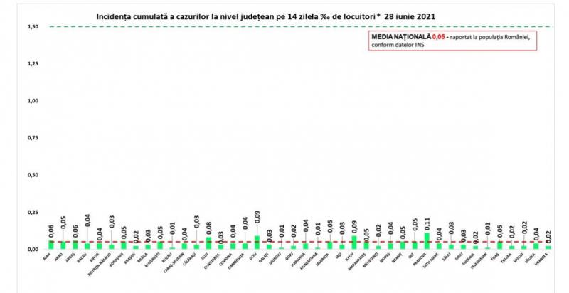 Incidenţa cazurilor de Covid-19 în România - 28 iunie 2021