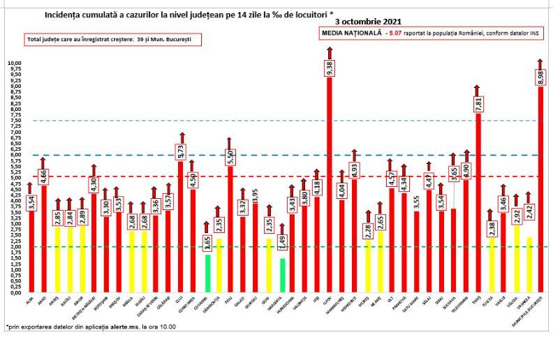 Incidenţa cazurilor de coronavirus la 14 zile - 3 octombrie
