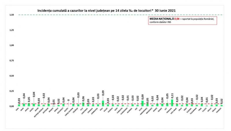 Incidenţa cazurilor de Covid-19 în România - 30 iunie 2021