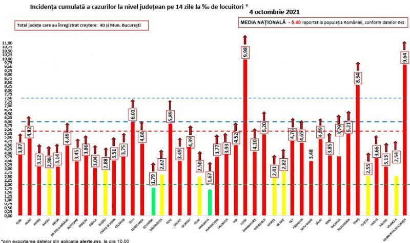 Incidenţa cazurilor de coronavirus la 14 zile - 4 octombrie