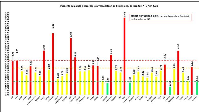 Incidenţa cazurilor de Covid-19 în România - 6 aprilie 2021
