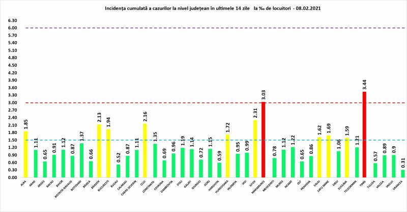 Incidenţa cazurilor de Covid-19 în România - 8 februarie 2021