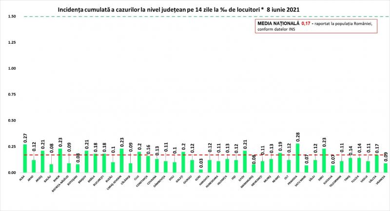 Incidenţa cazurilor de Covid-19 în România - 8 iunie 2021