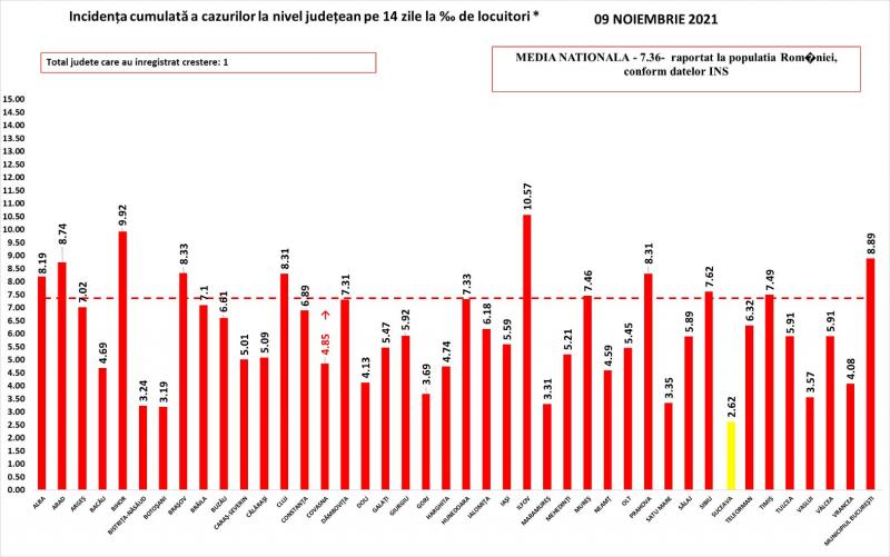 Incidenţa cazurilor de coronavirus la 14 zile - 9 noiembrie 2021