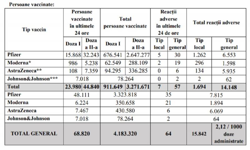 1. Numărul de doze administrate împotriva COVID-19 cu vaccinul Pfizer BioNTech (în ultimele 24 de ore): 48.111, din care: 15.868 de persoane vaccinate cu 1 doză; 32.243 de persoane vaccinate cu 2 doze.