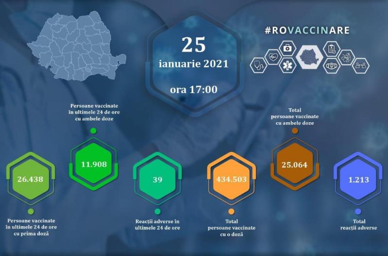 Bilanț vaccinare anti-Covid-19 în România, 25 ianuarie