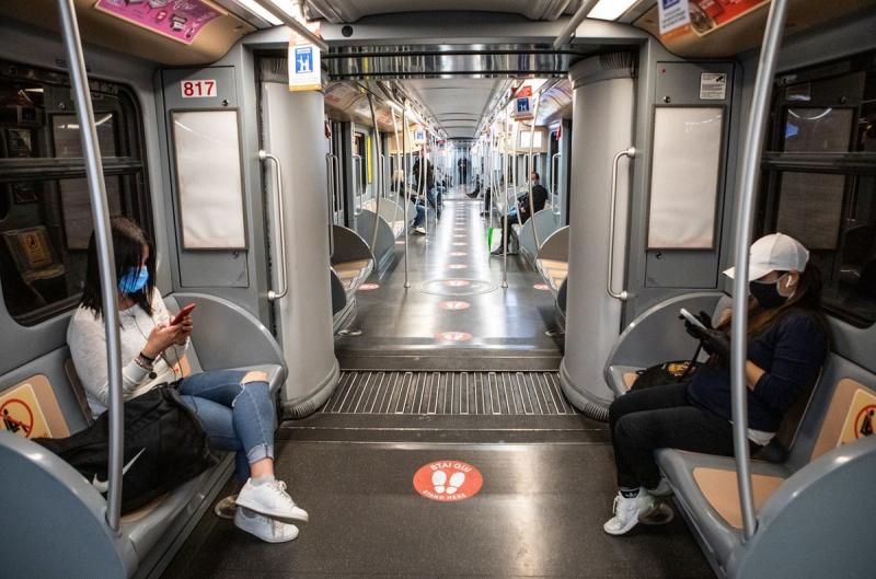 Ora 11.55- Semne de distanțare socială în metrouri, ca formă de limitare a răspândirii noului coronavirus, în Milano, Italia.