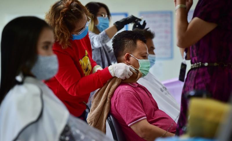 Ora 14.30- Angajații spitalului BMA din Bangkok primesc tunsori gratuite de la un grup voluntar de frizeri, după ce saloanele au fost închsie ca măsură de limitare a răspândirii noului coronavirus în Bangkok.