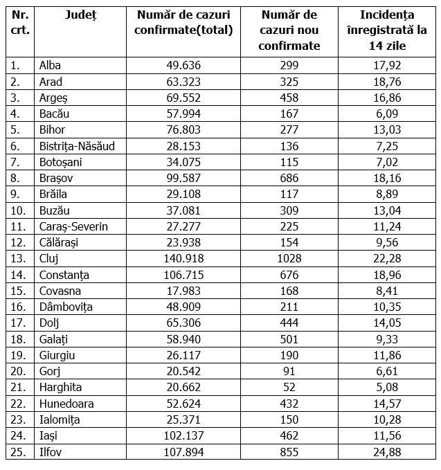 Top 3 judeţe cu cele mai multe noi cazuri COVID