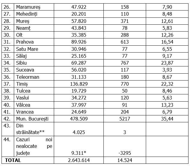 Lista pe judeţe a cazurilor Covid în România, 18 februarie 2022