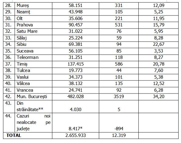 Lista pe judeţe a cazurilor Covid în România, 19 februarie 2022