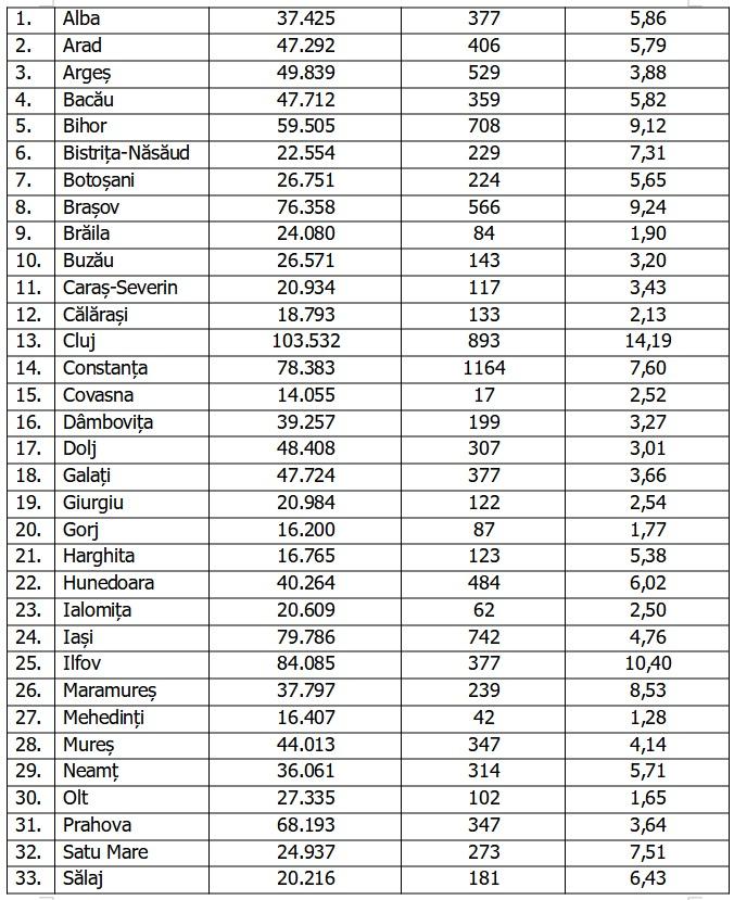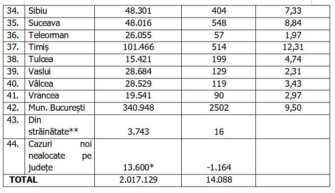 Lista pe judeţe a cazurilor de Covid, 23 ianuarie 2022
