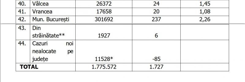 Lista cazurilor pe judeţe 27 noiembrie 2021