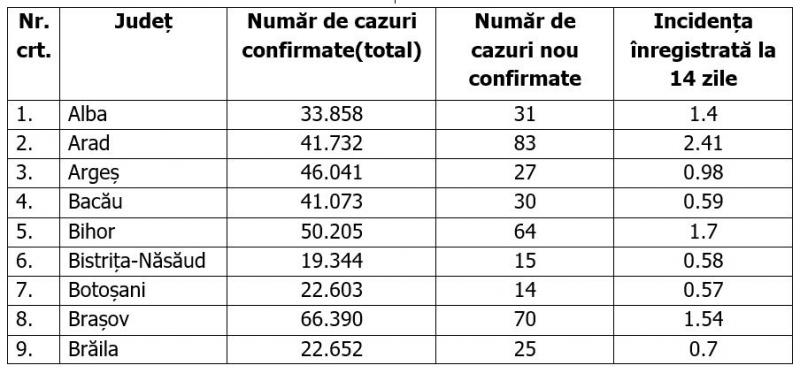 COVID-19. Lista cazurilor pe judeţe 8 decembrie 2021