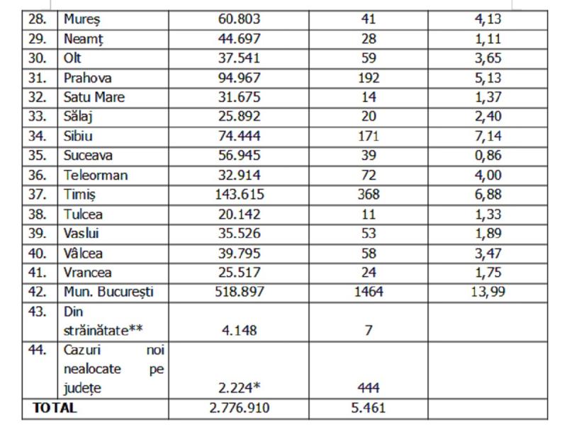 COVID-19. Lista cazurilor pe judeţe 8 martie 2022