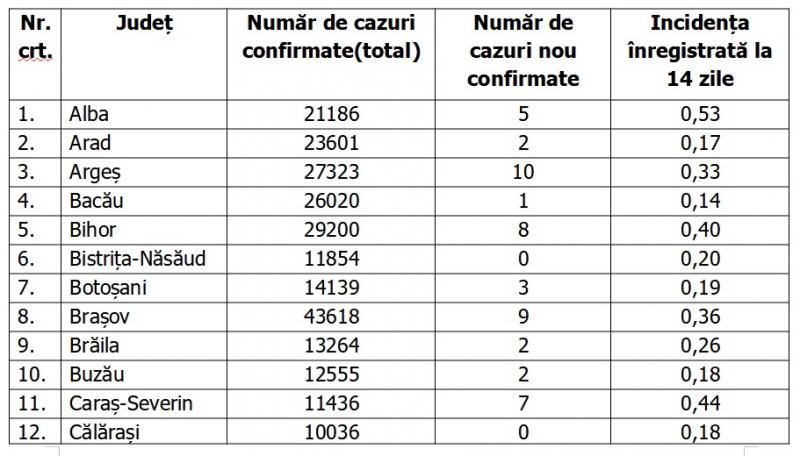 Lista pe judeţe a cazurilor de coronavirus în România, 1 iunie 2021