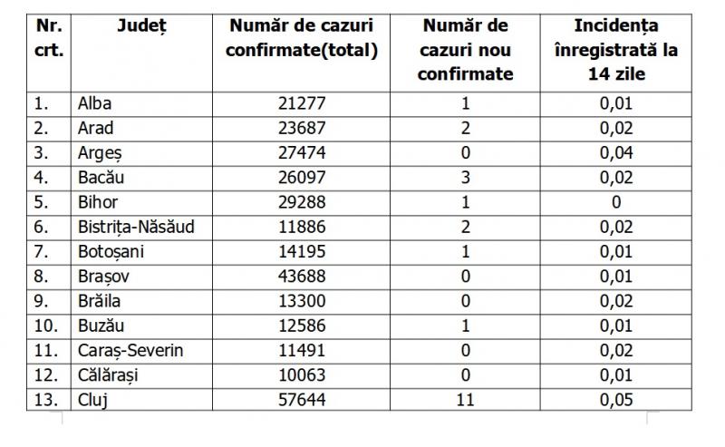 Lista pe judeţe a cazurilor de coronavirus în România, 14 iulie 2021