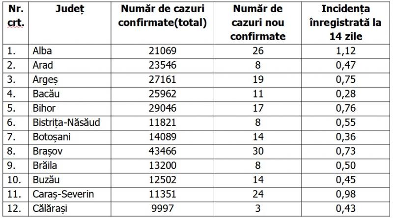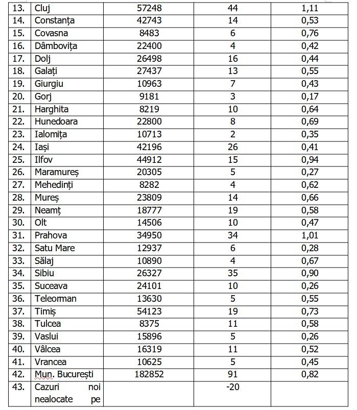 Lista pe judeţe a cazurilor de Covid în România, 20 mai 2021